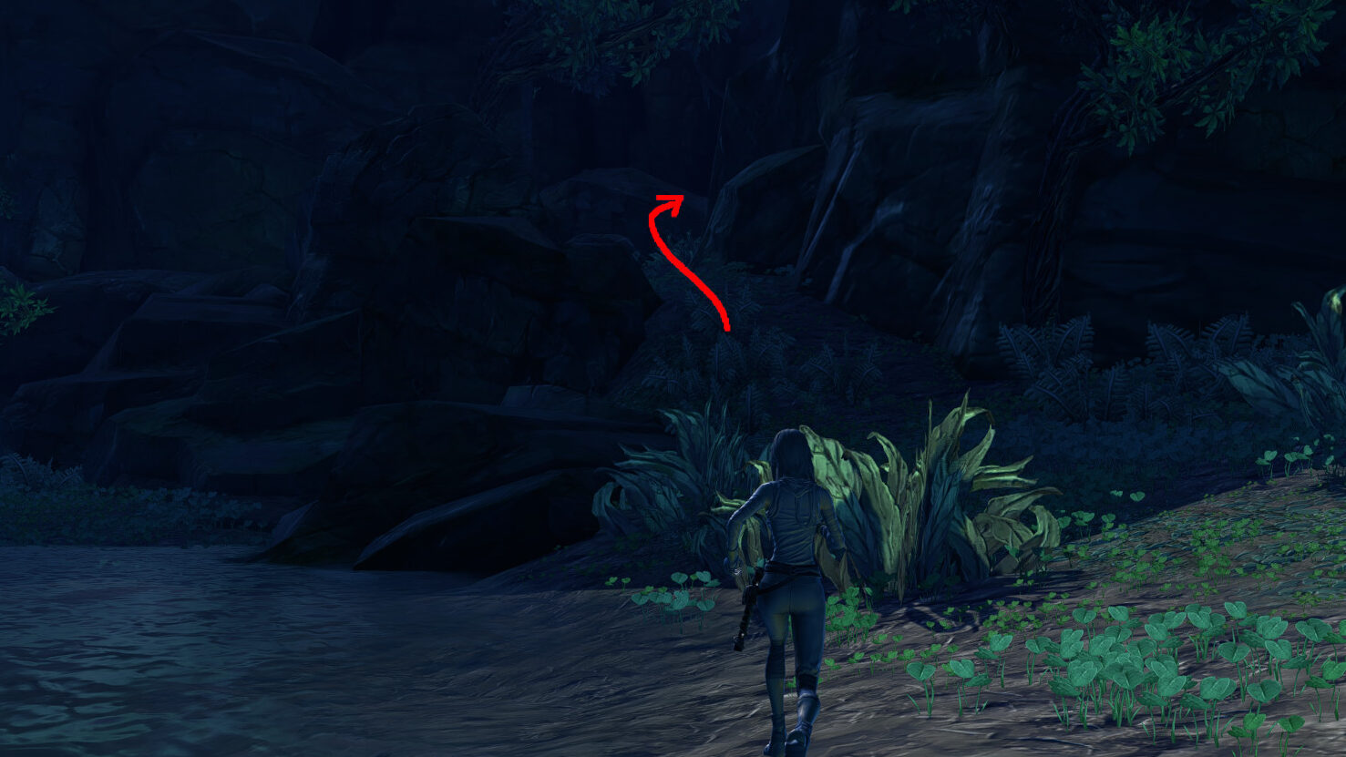 Staying close to the fence, you'll see a narrow path leading upwards straight ahead.