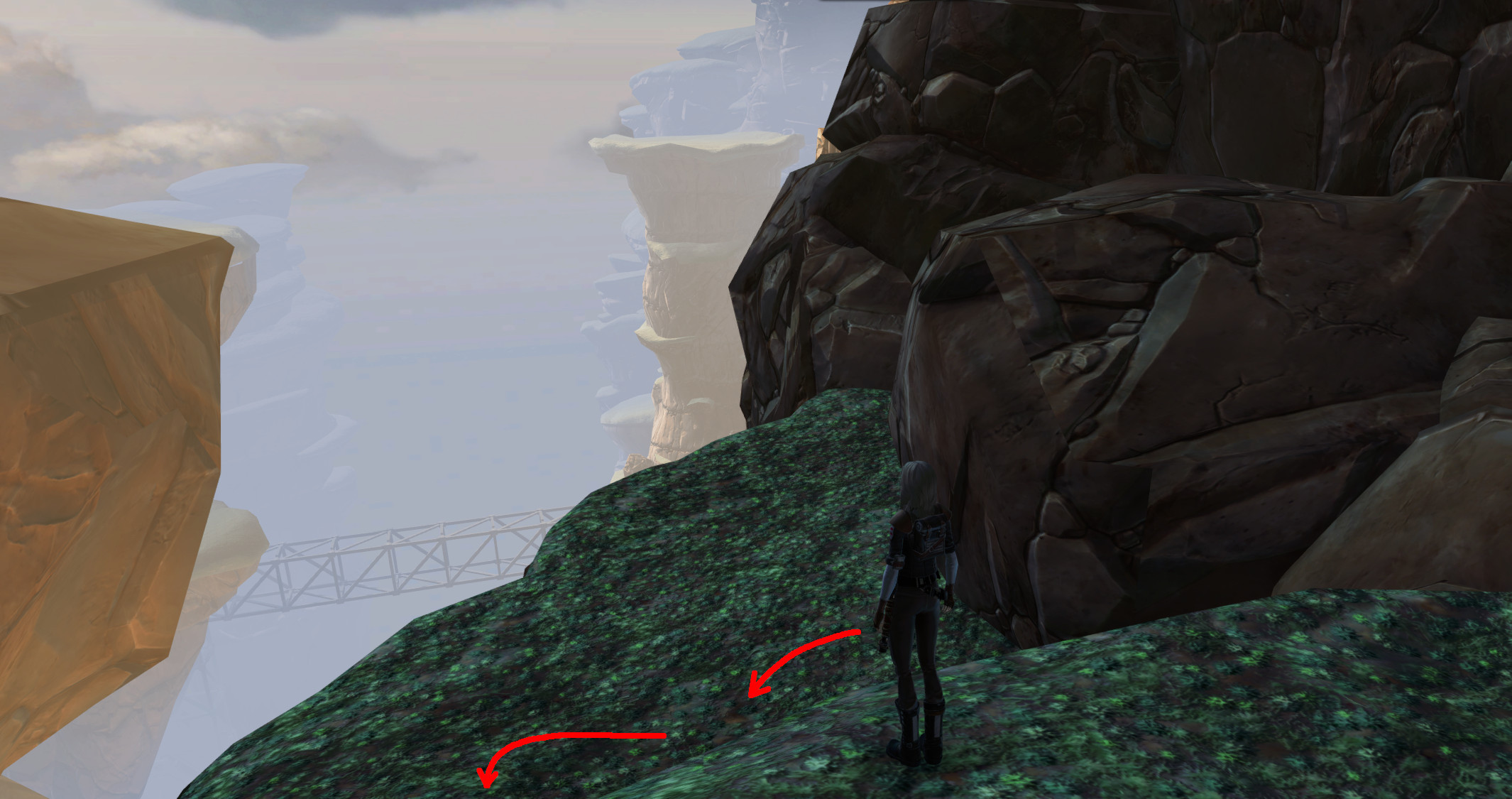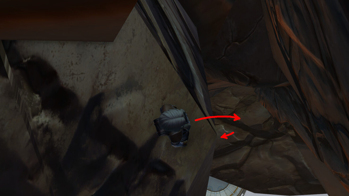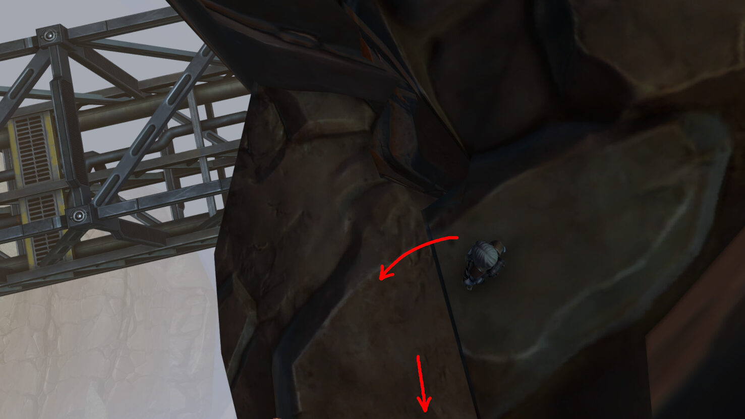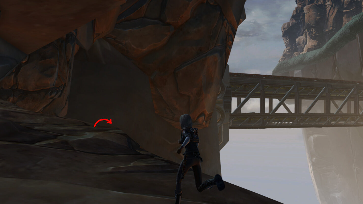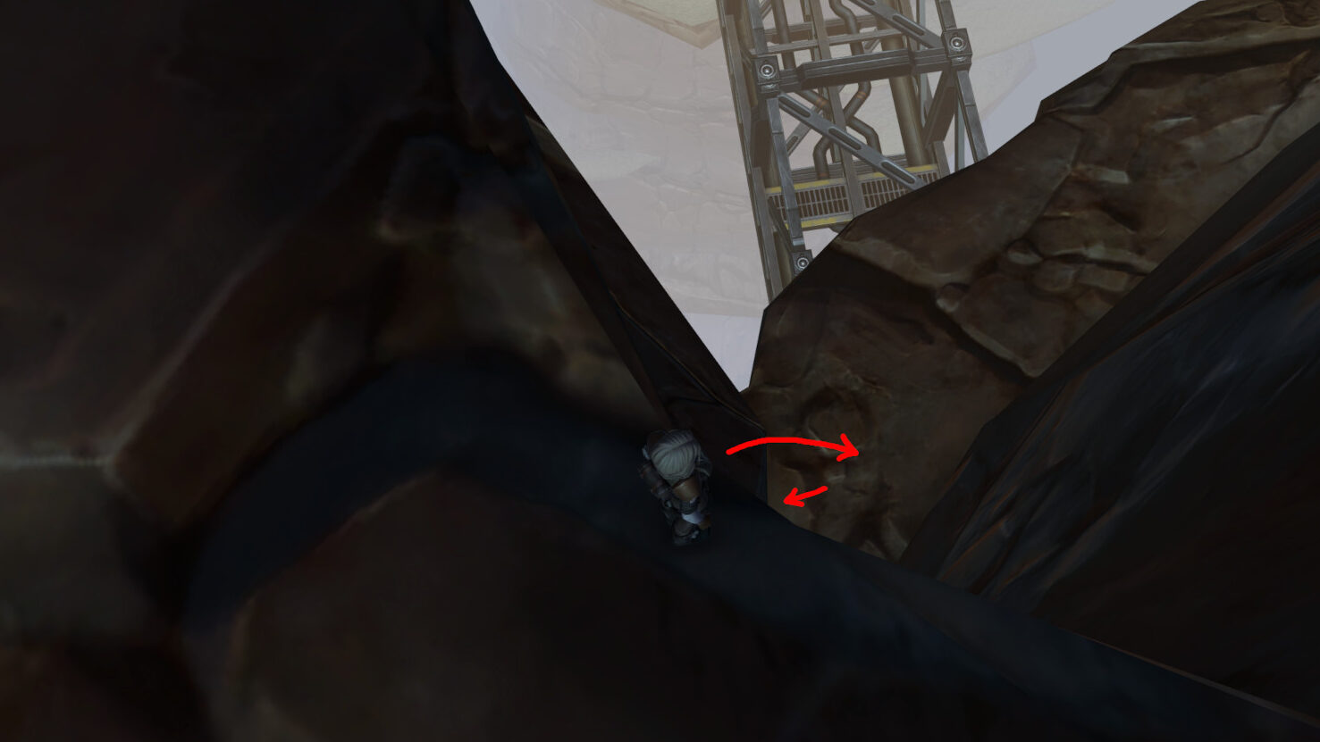 At the end of the walkway, you have to climb the last beam on the right side. Important Note: You can not climb this if you are above Body Type 2 for either gender.