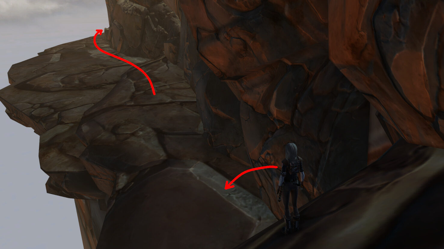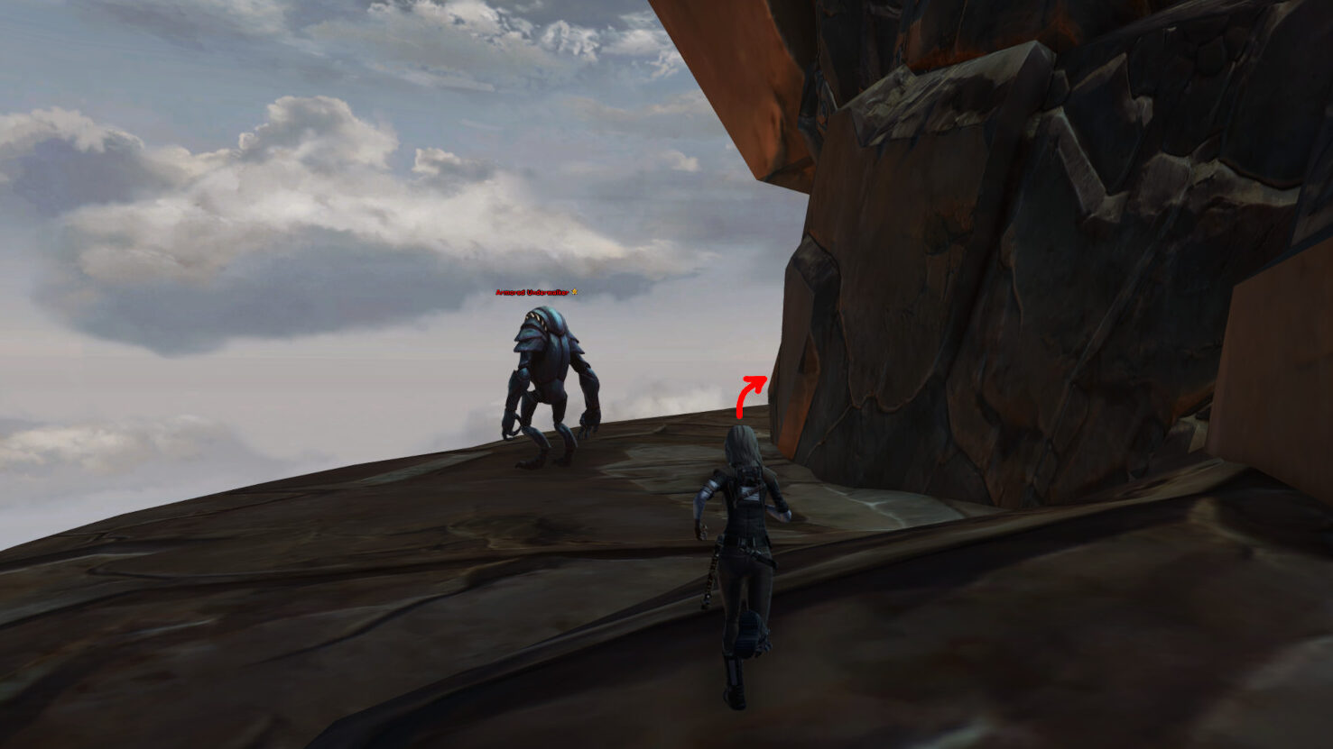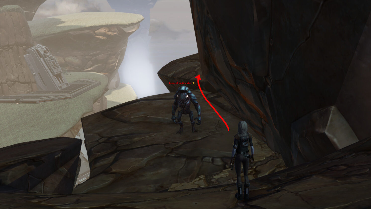 Run left and jump down another set of platforms until you reach the platforms with the Elite Underlurker. Be ready for a fight, unless you're stealthed, because you will be at low health.
