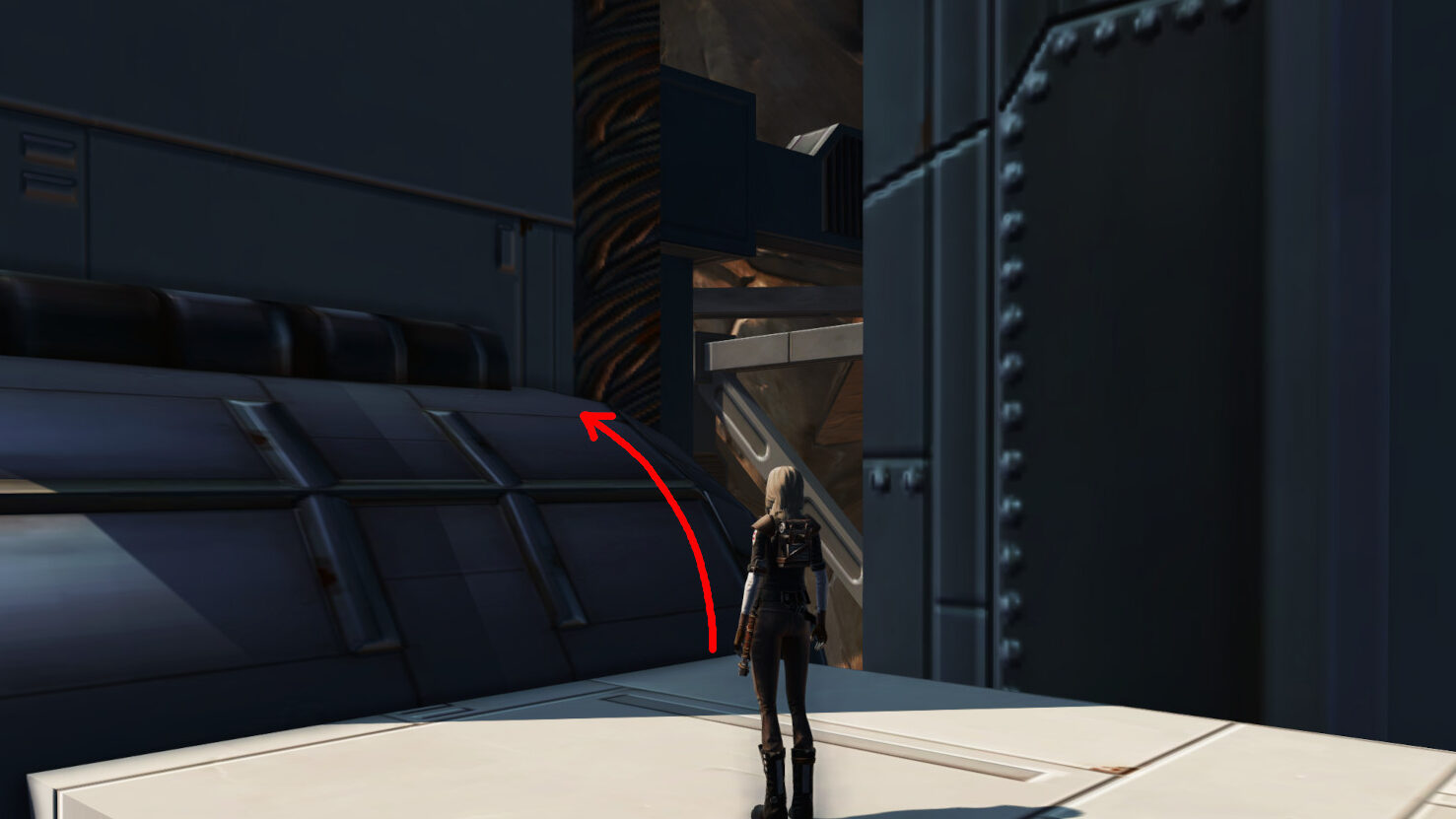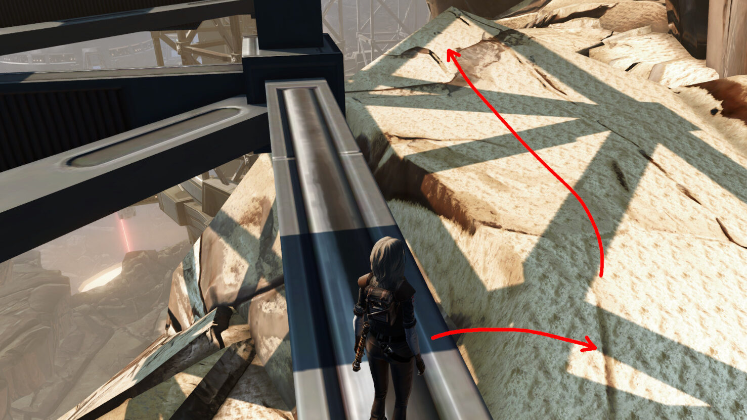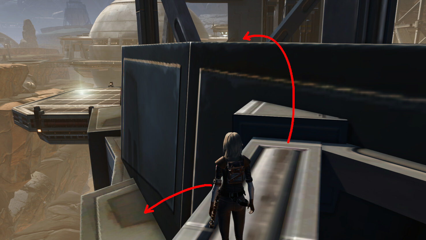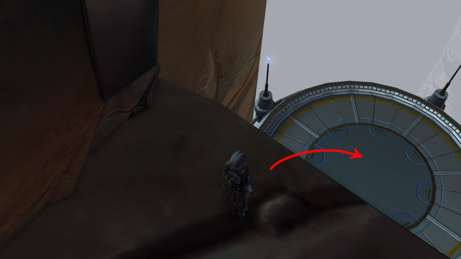 Either drop down to the left or jump on top of the structure to reach the Datacron.