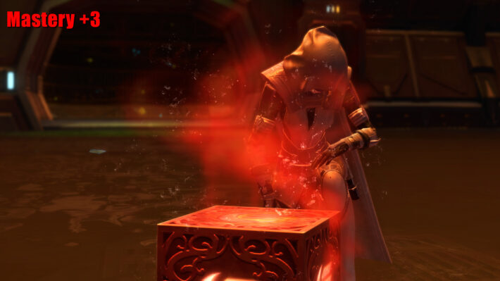 The Red Mastery Datacron increases your aptitude in combat, allowing you to do more damage. It will grant you Mastery +3 to your permanent stats along with codex: Galactic History 37: Freedon Nadd. There are 5 Datacrons in total located on the planet of Nar Shaddaa.