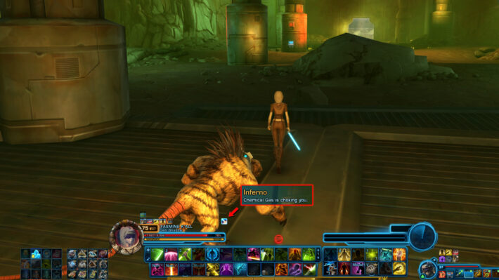 If you are successful, the Inferno debuff will disappear and the shielded doorway to the south will be opened for a short time. You might get into combat momentarily, but ignore it and get to the end where the Datacron is located.