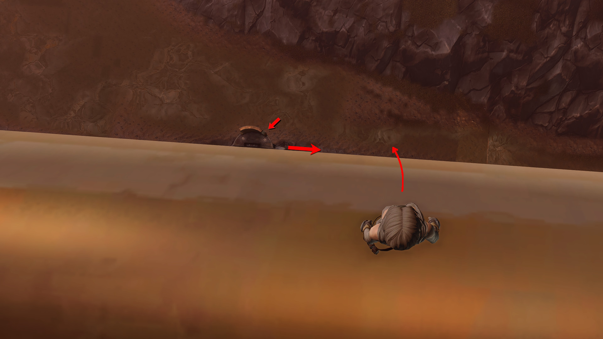 Another approach would be directly above from the small droid's pipe exit. Starting coordinates #2: -2104, 2901.