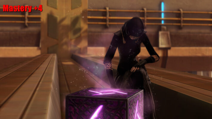 The Purple Mastery Datacron increases your aptitude in combat, allowing you to do more damage. It will grant you Mastery +4 to your permanent stats along with codex: Galactic History 79: The Conclave at Katarr. There are 7 Datacrons in total located on the planet of Corellia.