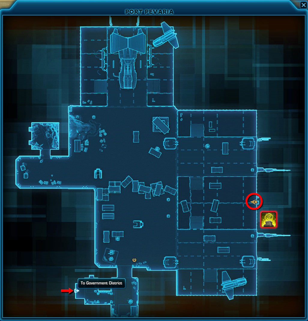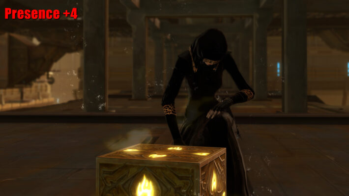 The Presence Datacron is located underneath a platform in Port Pevaria in the Government District. This is a Republic area, so I highly recommend getting this on a Republic character, or at least a stealth Imperial character.