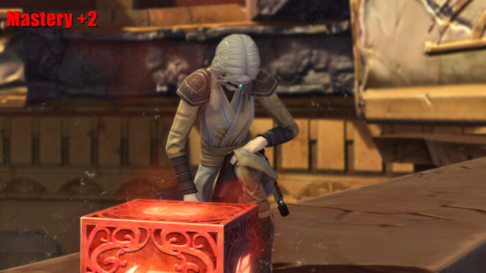 The Red Mastery Datacron increases your aptitude in combat, allowing you to do more damage. It will grant you Mastery +2 to your permanent stats along with codex: Galactic History 07: The First Spaceflights. There are 5 Datacrons in total located on the planet of Coruscant.