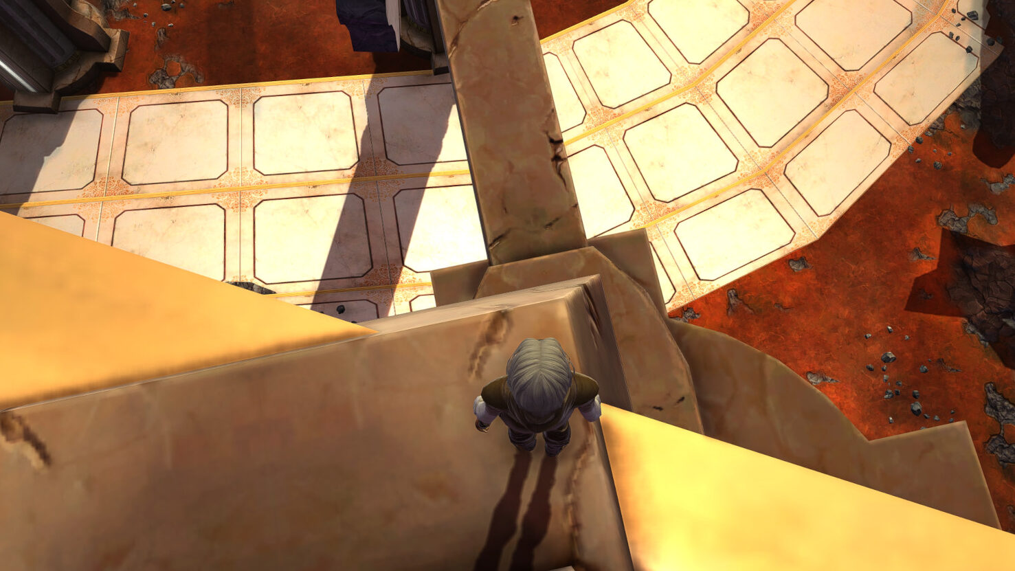 When you get to the edge you can see the Datacron on a broken beam. Make sure to angle yourself correctly, so you don't jump too far to either side.