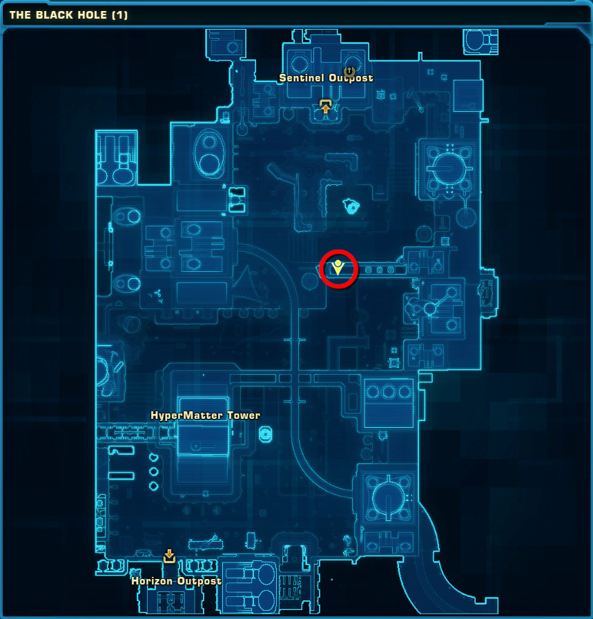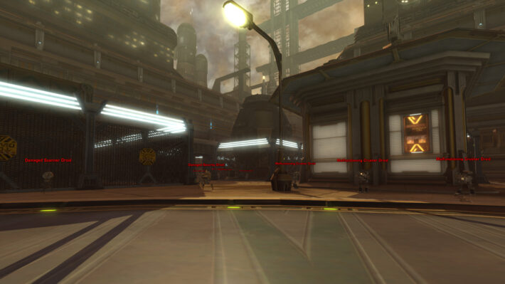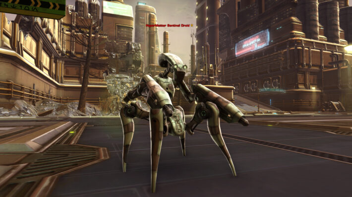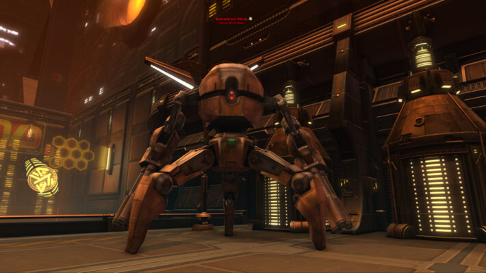 Patrolling the crumbling streets of The Black Hole on Corellia, you will find the HyperMatter Sentinel Droid.