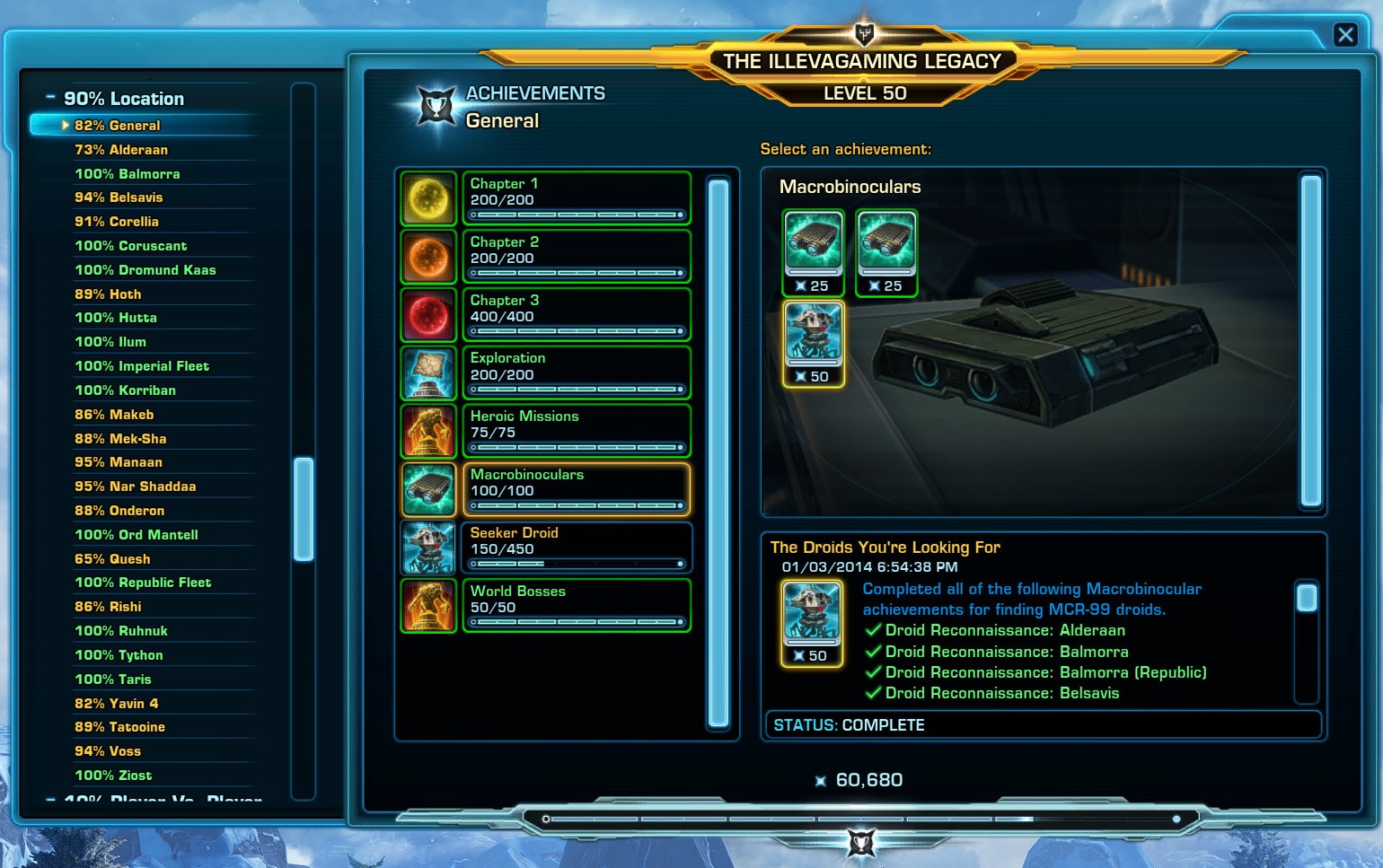 The Droids You're Looking For is an achievement in Star Wars: The Old Republic that tasks players with finding The Shroud's hidden Recon Droids on a wide range of planets. With a pair of Macrobinoculars the concealed Recon Droids can be scanned and identified in specific locations throughout the galaxy. This guide lists all known Recon Droid locations and provides the information needed to complete the achievement efficiently.