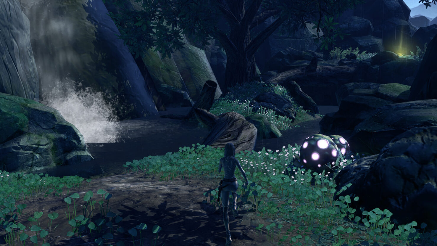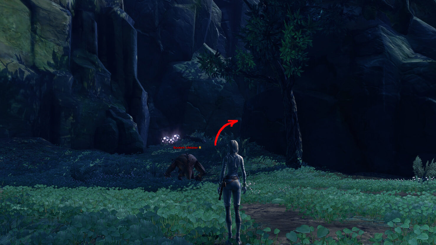 Follow the path into a small and idyllic alcove, where you'll see the Datacron at the top. The tree trunks are easy to use.