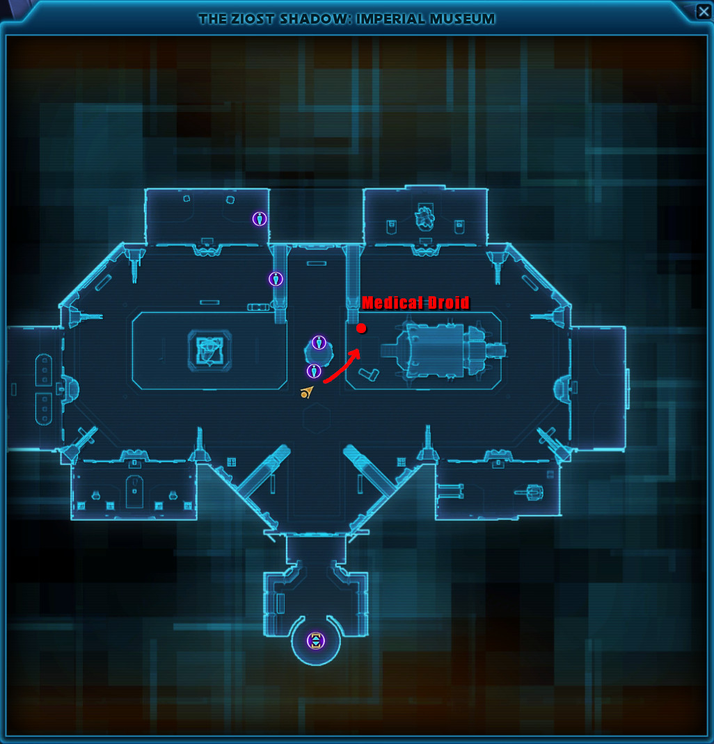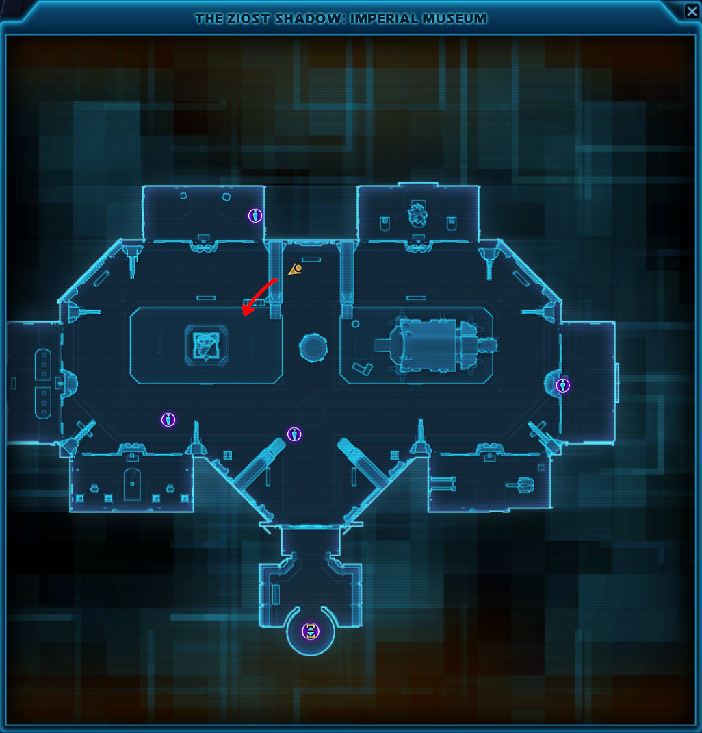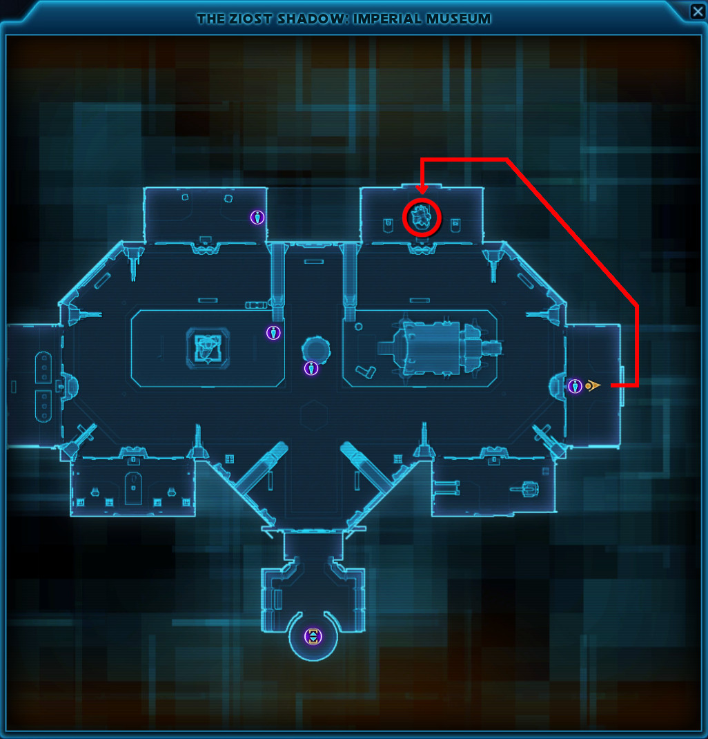 This Datacron is located in the Museum area of the Ziost Shadow on the Imperial Fleet. This is a semi difficult jumping puzzle and you will need a group of at least 4 people. You can do this on either side, but once you have completed it, you can't access the area yourself anymore. You can accompany others though.