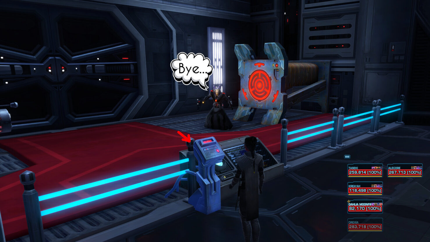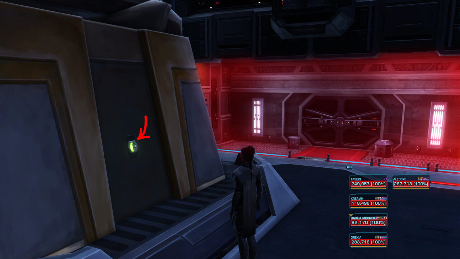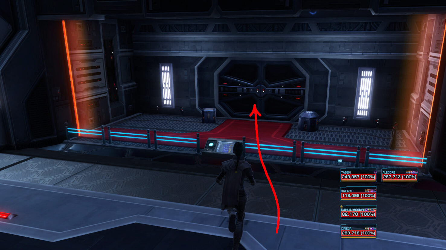 Note: There is a button on the right side as you pass the Force Field that will lower the Force Field again, in case someone dies and needs access back into this area again.