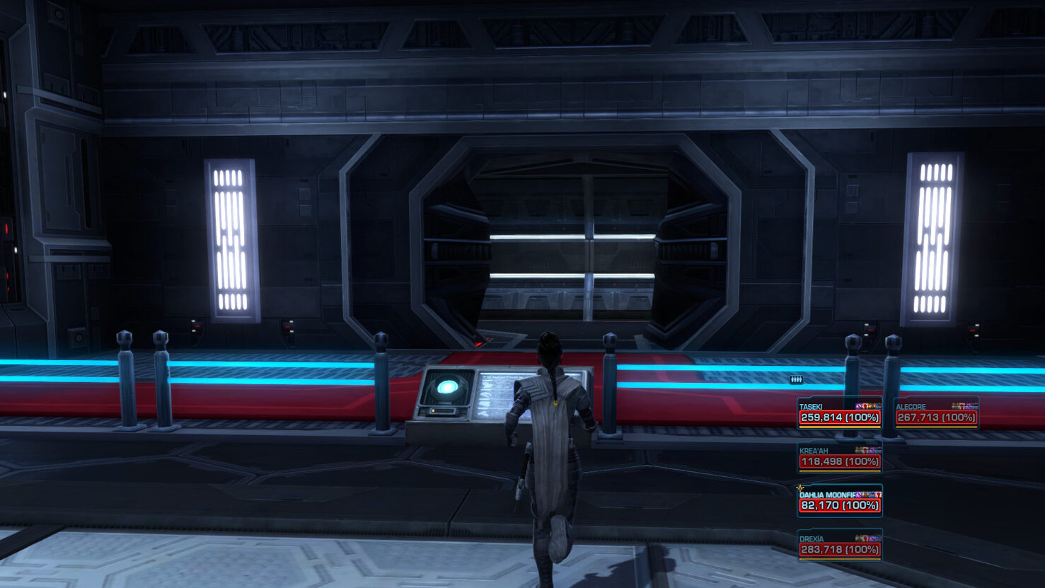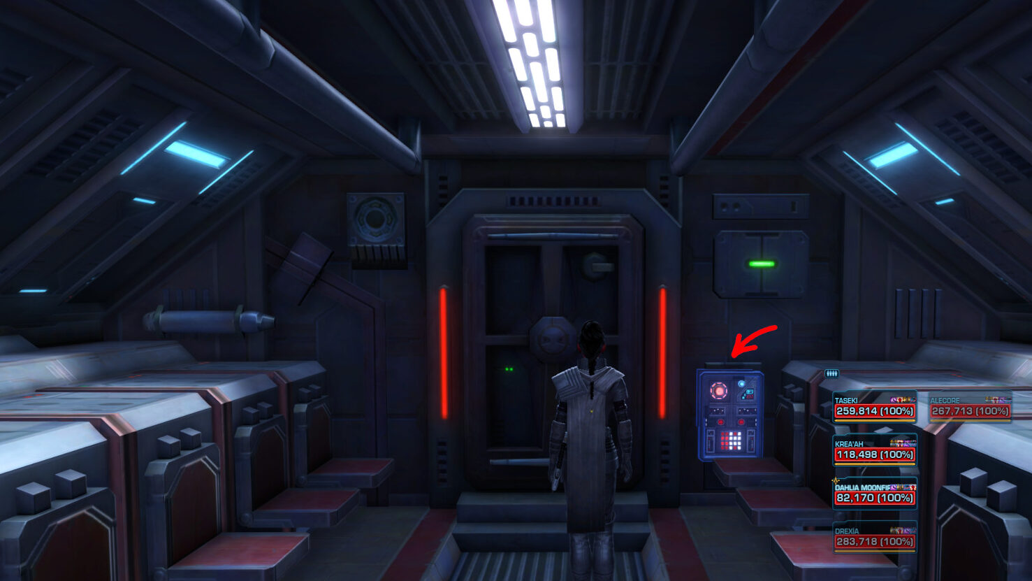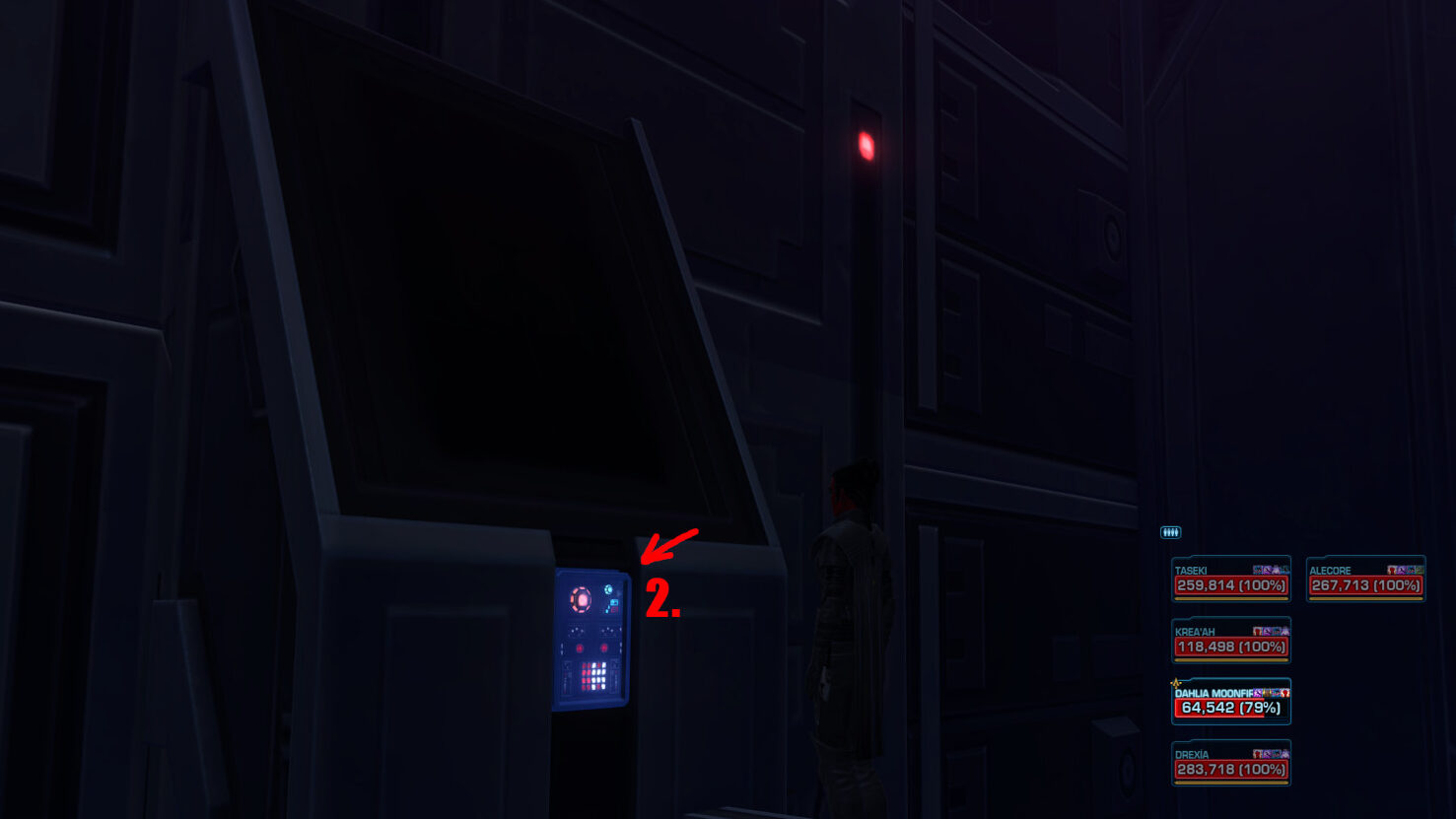 Note: There is a button on the right side as you pass the Force Field that will lower the Force Field again, in case someone dies and needs access back into this area again.