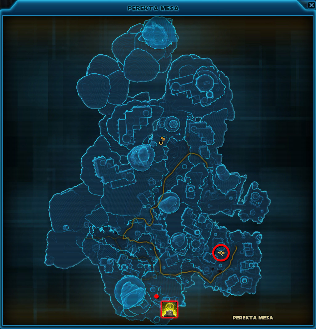 This is a semi difficult jumping puzzle. The Presence Datacron is located in a broken pipe in the Perekta Mesa. The starting point is close to the Imperial Shuttle.