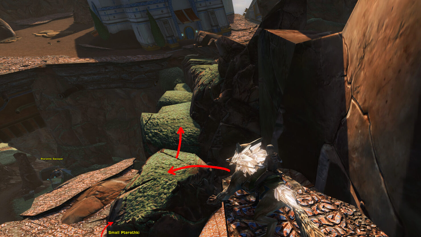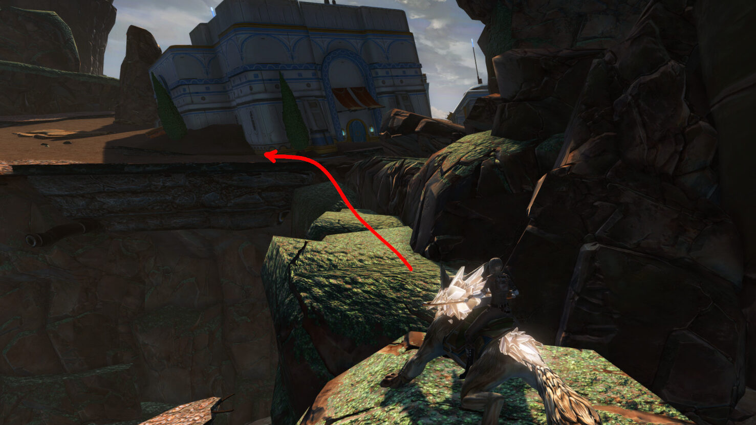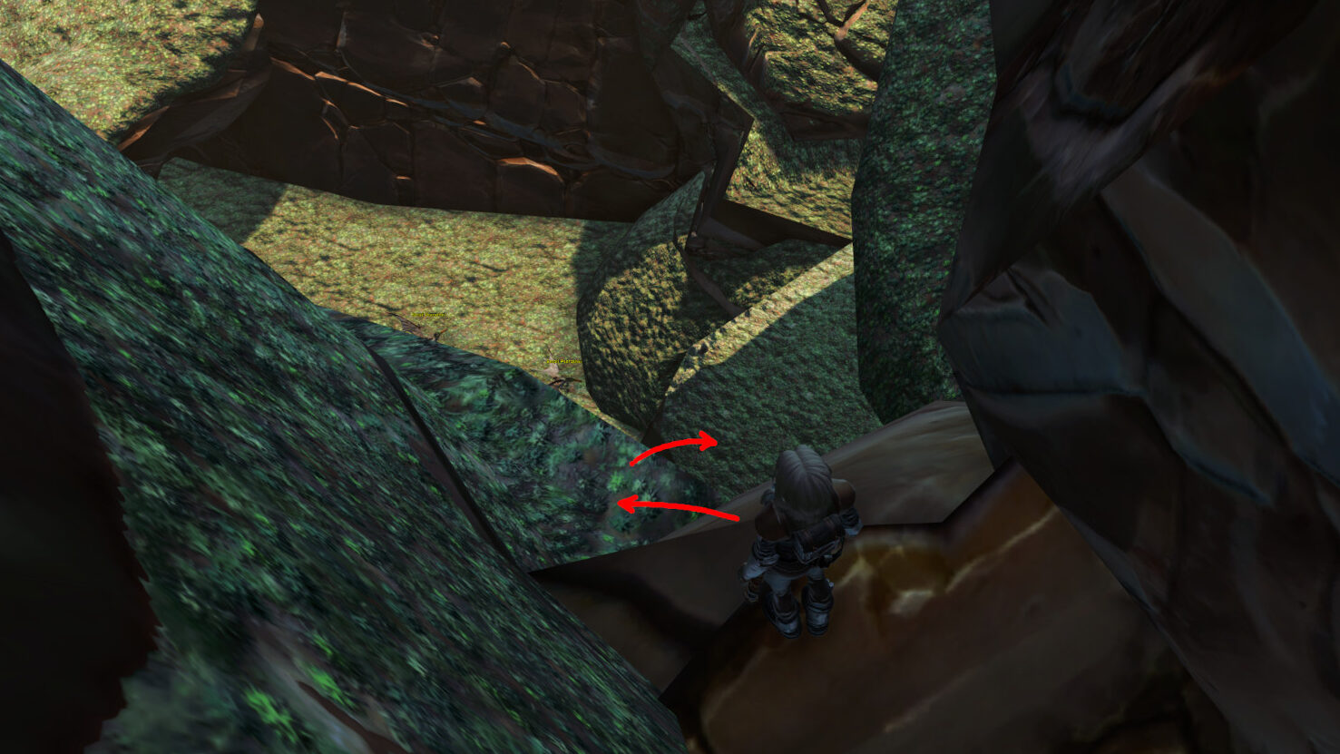 Drop down onto the grassy boulder and follow the grassy rocks up to the right. If you miss the grassy boulder , don't fret. You can jump up from the ground below as well.