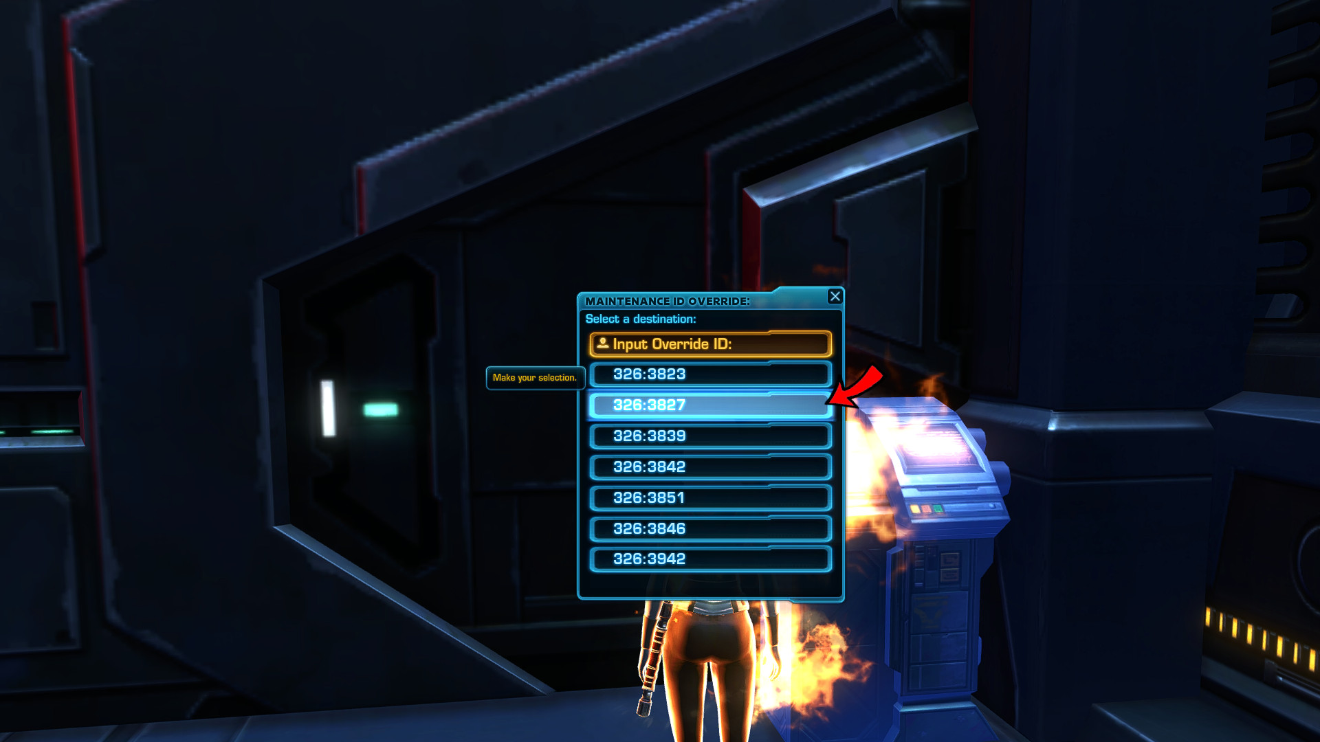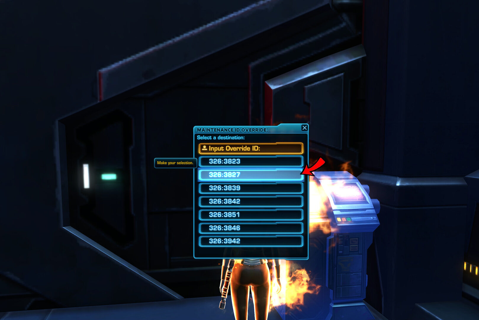 Jump down and get to the terminal in the corner and click on the line of numbers on the second row. This row has to have the code: 326:3827.