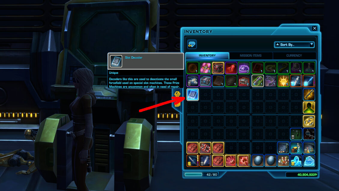Important note! You have to interact with the Old Prize Machine to be able to interact with the Yellow Matrix Shard. This will grant you a Slot Decoder you can find in your inventory. I recommend going for this Datacron right after, since it is in the same area.