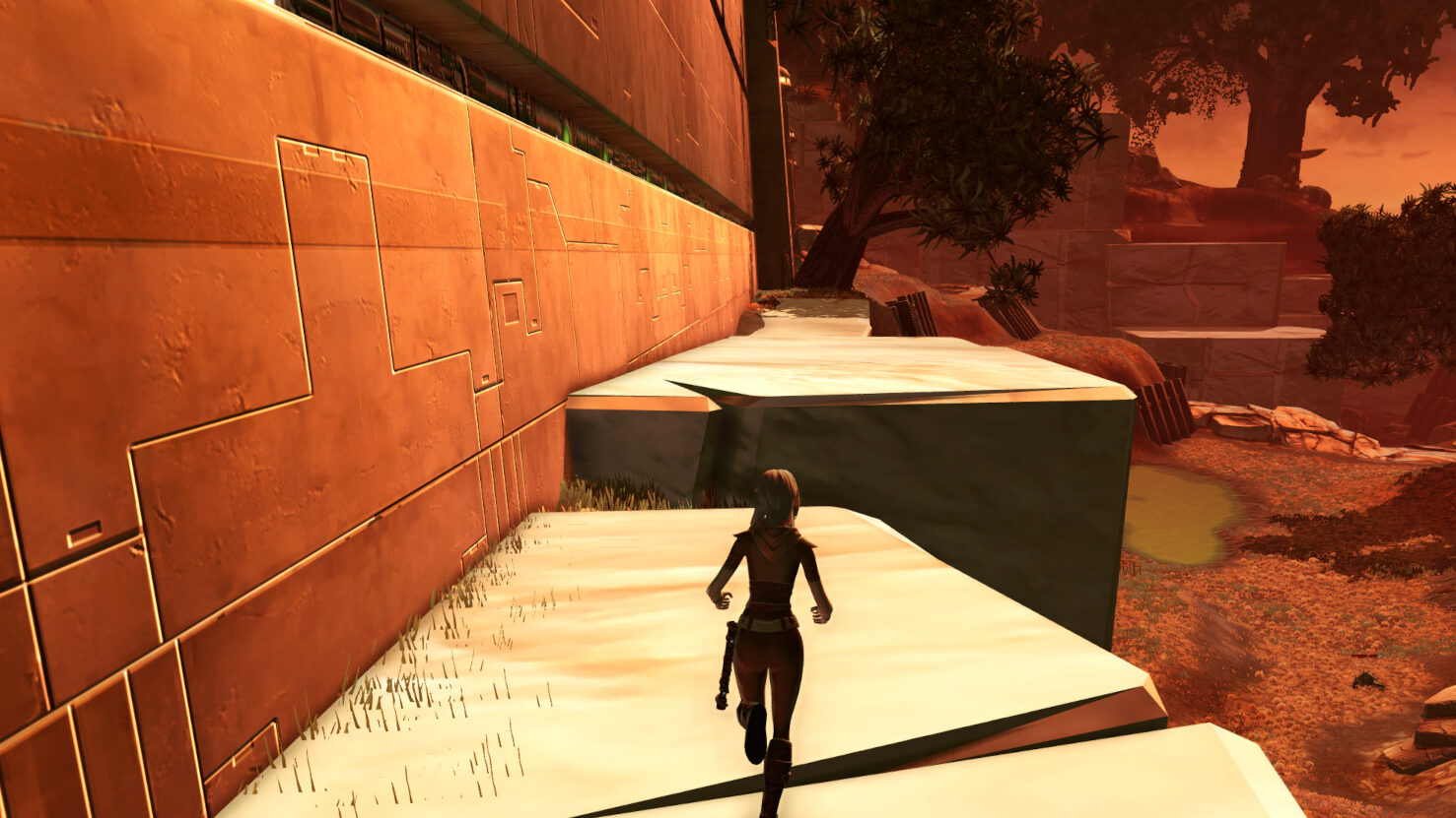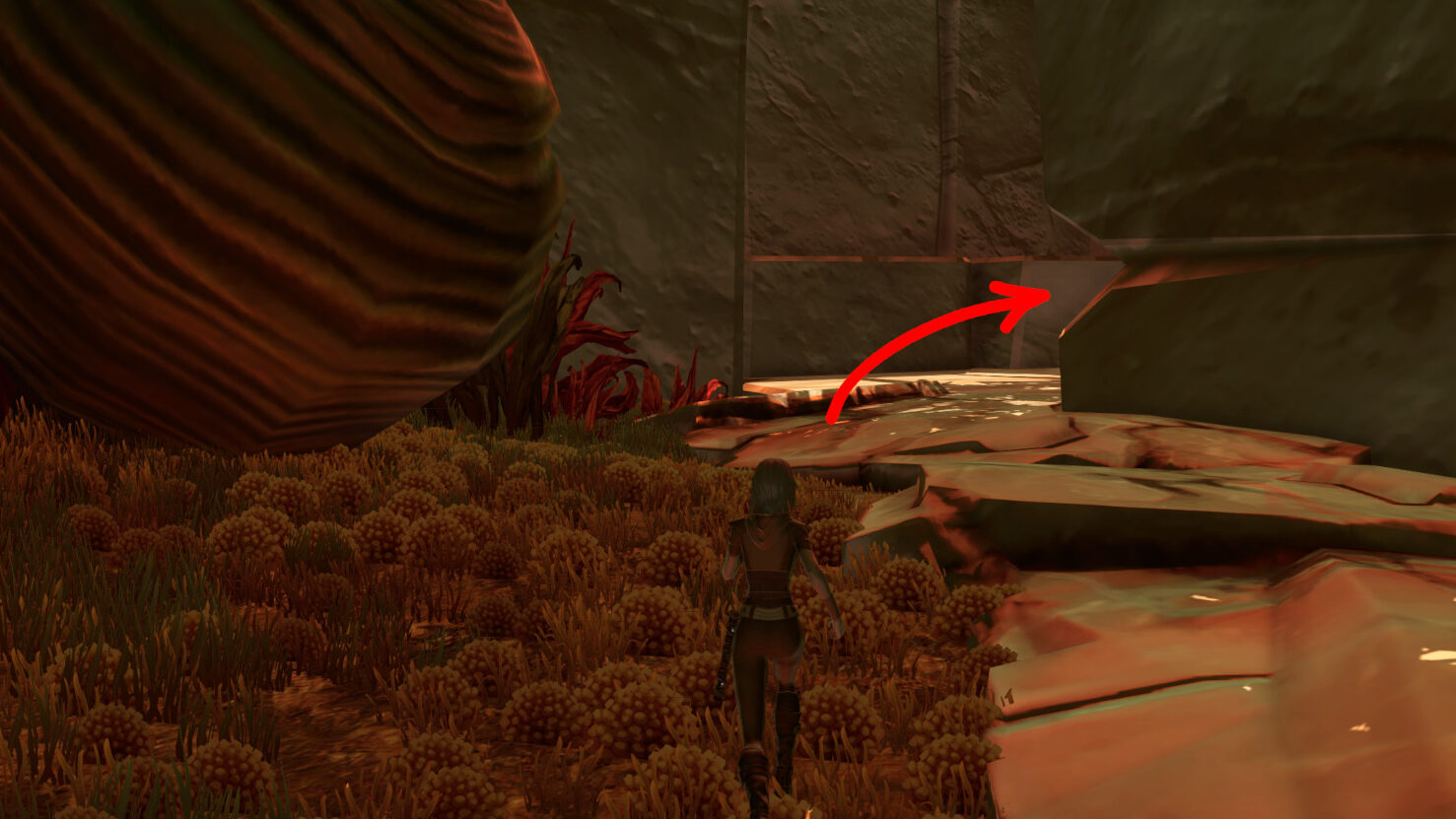 Follow the right side of the outer wall guarding the Hutt Palace and turn right after the tree.