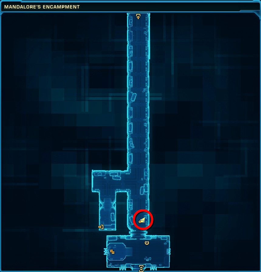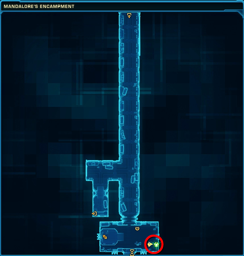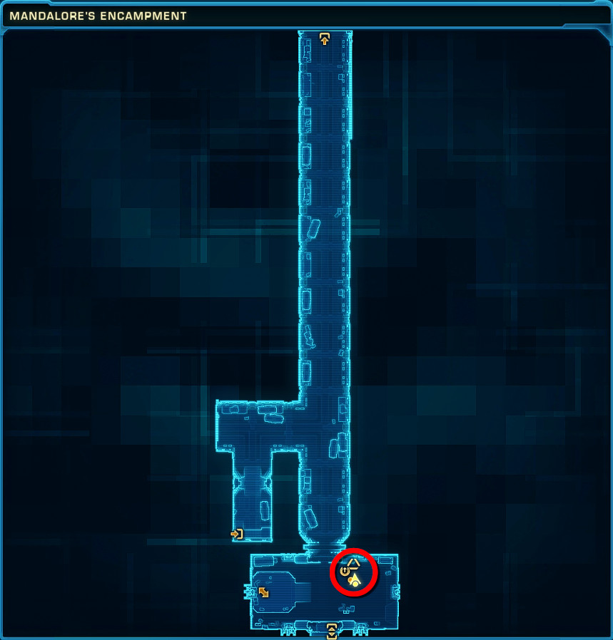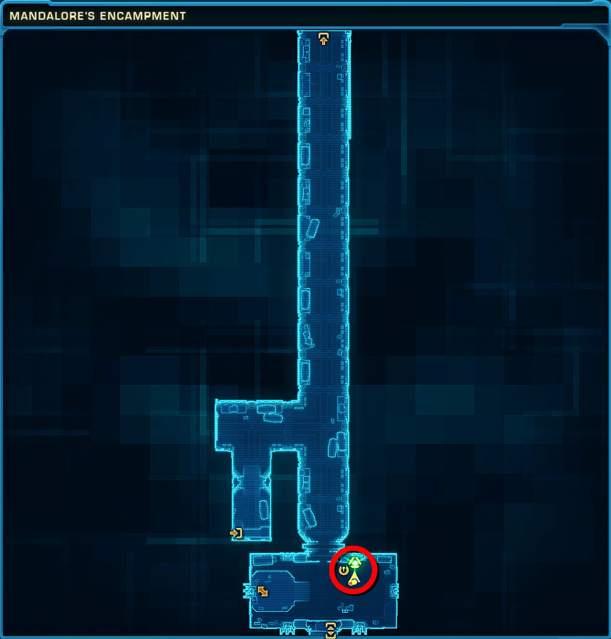 Travel back to Mandalore's Encampment and use the Evidence Analysis Terminal next to the Reputation Vendor.