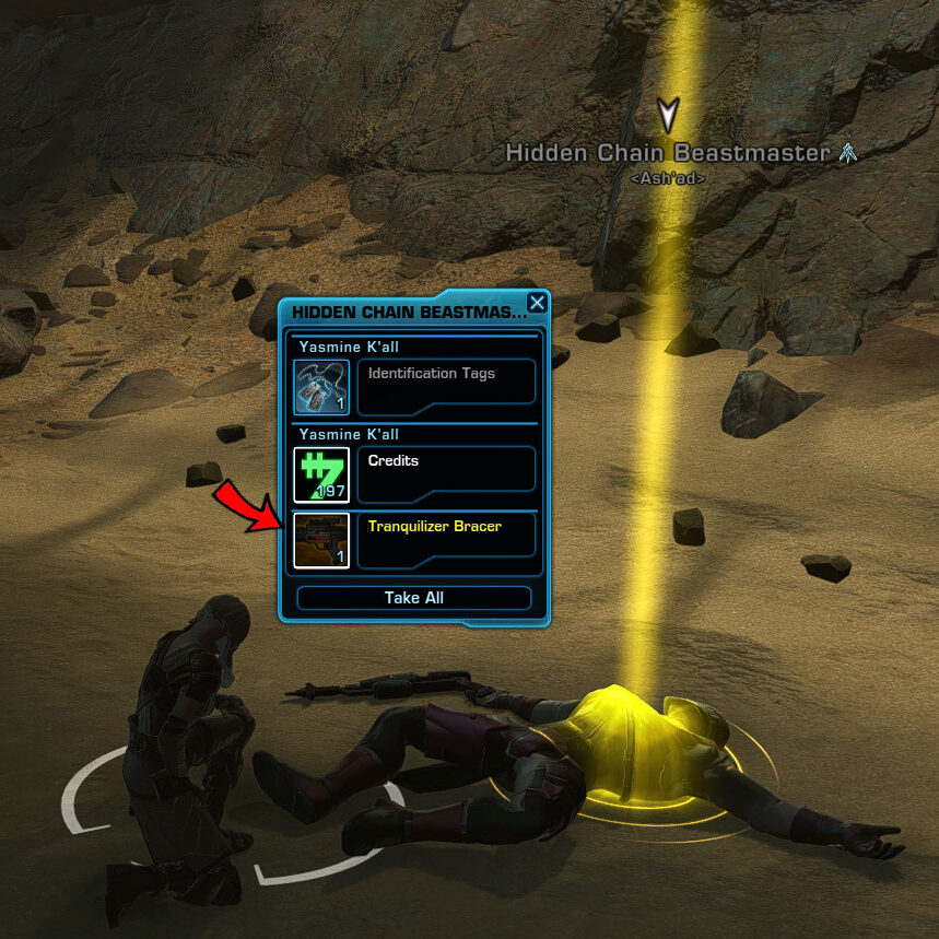 Then you have to recover a Tranquilizer Bracer from a Hidden Chain Beastmaster. One Beastmaster is conveniently located just inside the Water Treatment Plant in the south of the Dilapidated Waterworks.