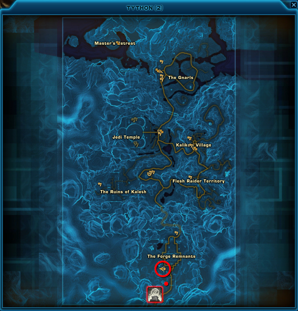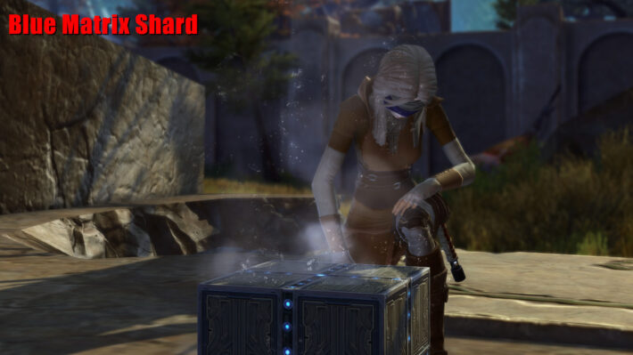 The Blue Matrix Shard is located in the west side of The Forge Remnants in the very south of Tython. As you go south towards your class story mission you will see a gap in the wall to your right.
