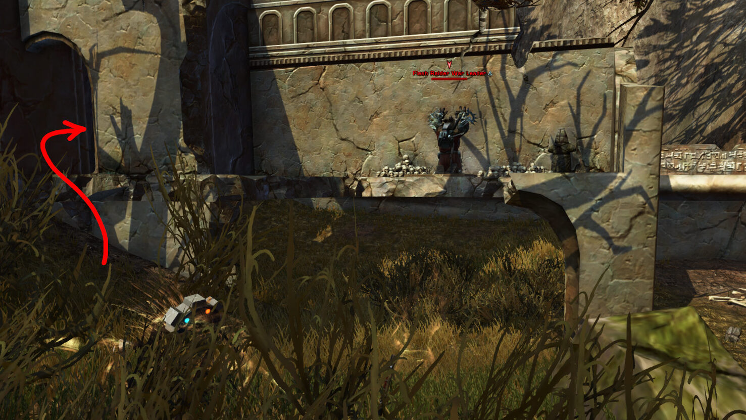 Run to the end and turn left and follow the path. There will be several groups of Flesh Raiders in your way.